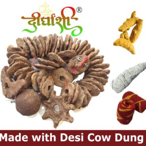 Dirghaanshi Cow Dung Cakes/Cow Dung Badkulla Mala with Holi/Gobar Badkulle/Holi Pooja Article Desi Cow Dung Cakes for Hawan, Pujan and Religious Purpose (Set of 51 PEC)